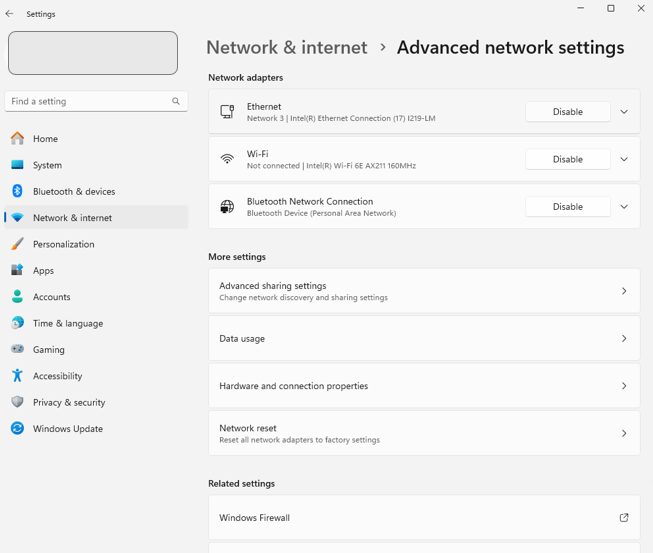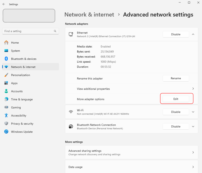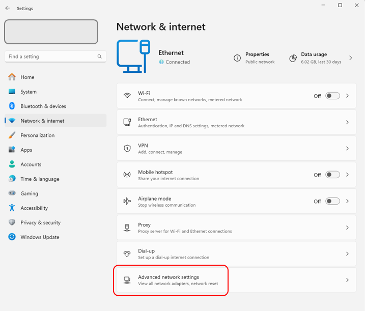 3. Select Ethernet or Wi-Fi Adapter (e.g. Ethernet):