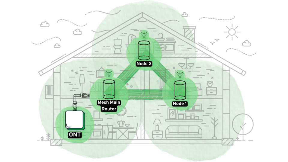 - Mesh nodes automatically connect and sync, so once set up, no further configuration is usually needed.