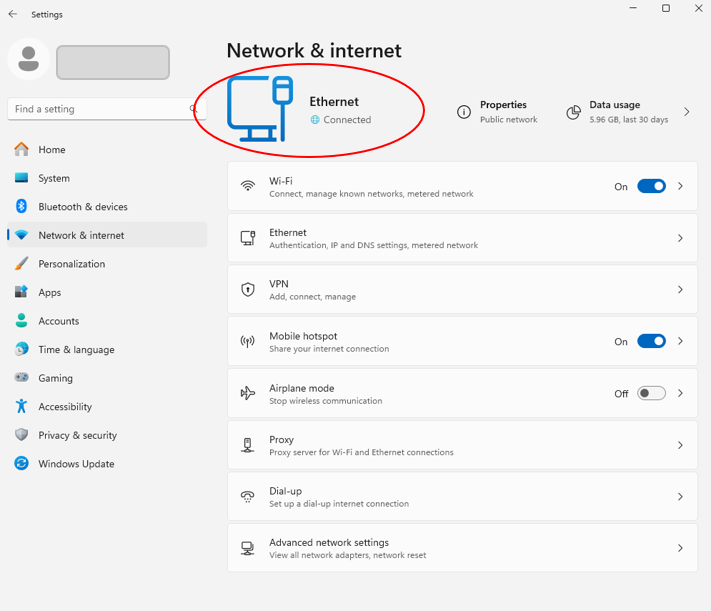 (1) Go to Start → Settings → Network & Internet.