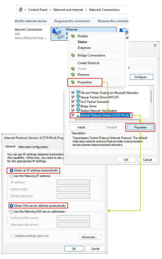 ncpa.cpland hit Enter. - Right-click your network adapter and select Properties.