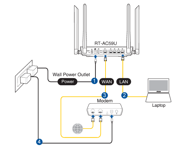 Option-1. Wired: Turn off the Wi-Fi on your computer and connect the devices as shown below.