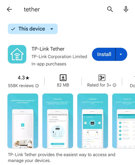 Step-1. Install [TP-Link Tether] on your mobile