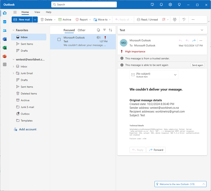 Compose a New Email: Click New Mail and draft a test message.Send the Email: Check if the email is sent successfully. If it does, your issue is resolved.