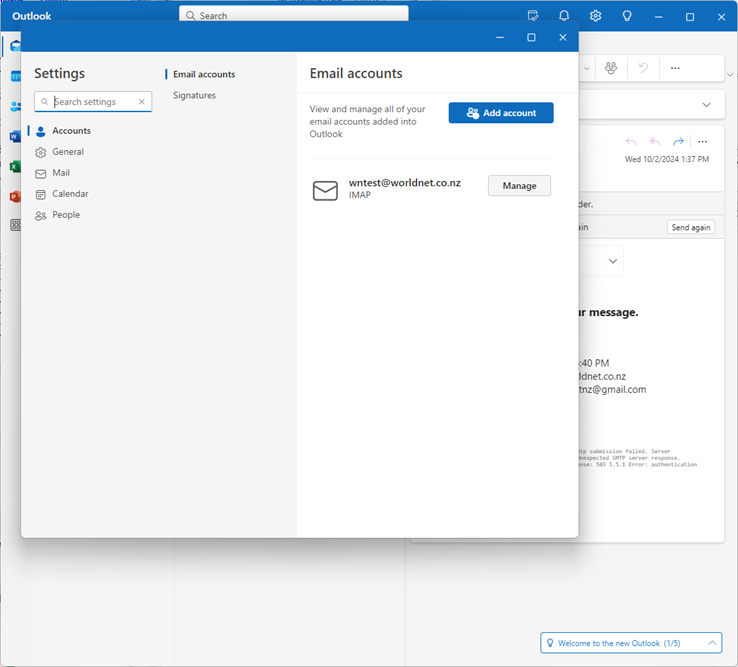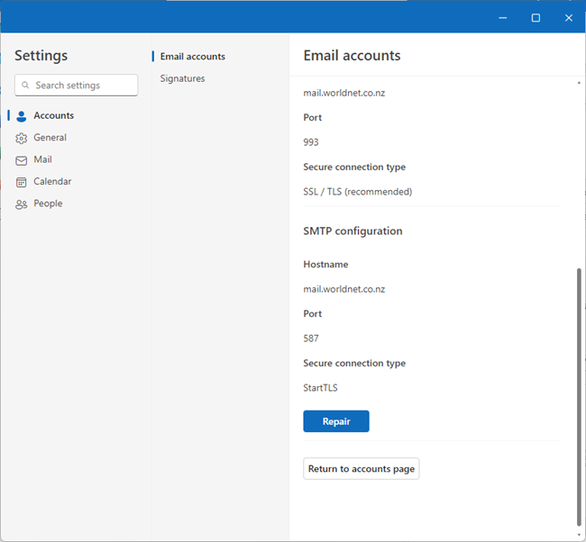 Open Settings: Go to the Outlook settings menu.Manage Account: Click on Manage under your email account settings.Scroll and Repair: Scroll down to the bottom and click on Repair.Update SMTP Server: